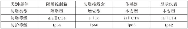 2、該裝置一般由隔爆控制箱、防爆接線盒、傳感器與硅示儀表組成,防爆與防護(hù)等級(jí)為: